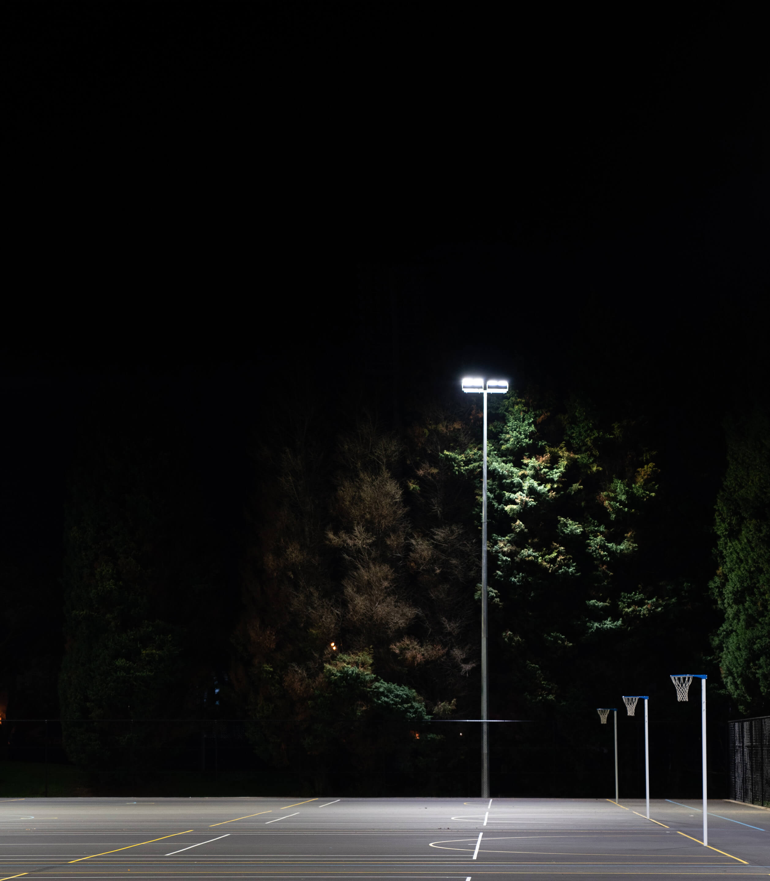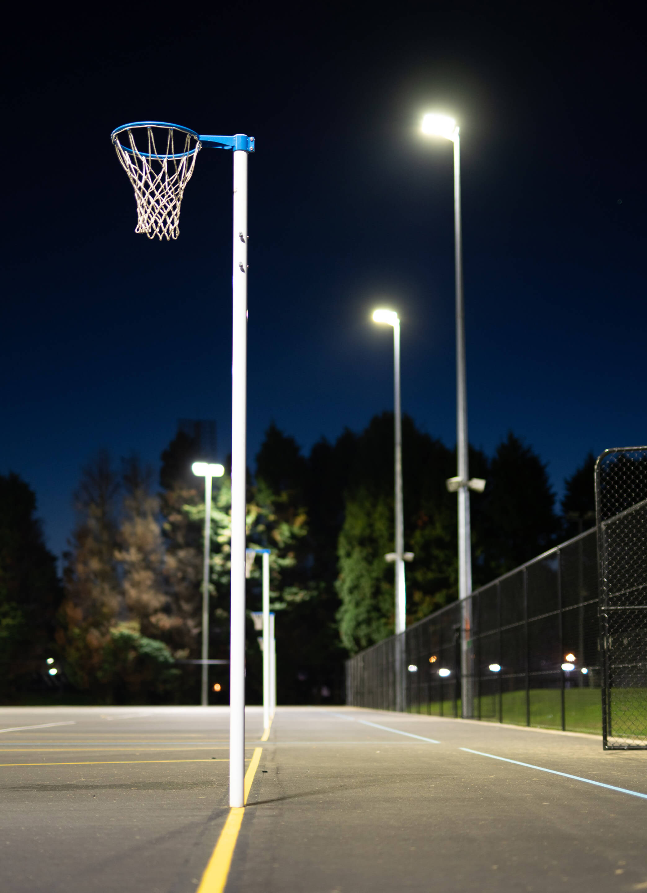 To design & supply a purpose build sports lighting package. With dual use courts being Netball & Tennis. Also encapsulating the latest in LED technology & energy efficiency.